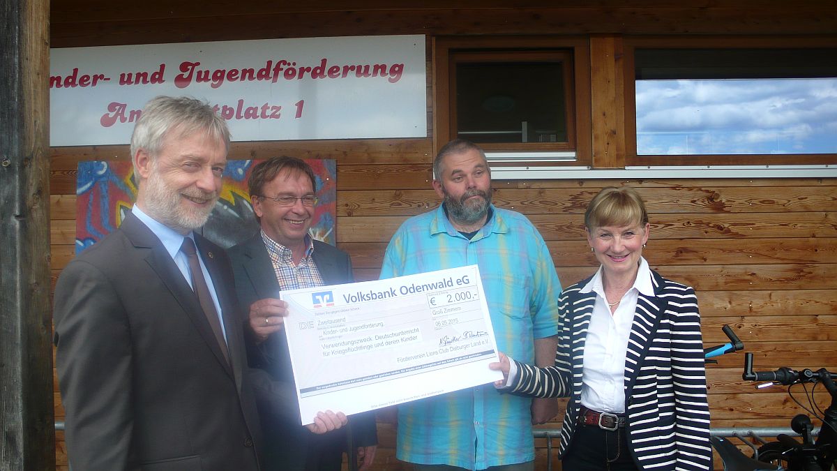 Am 12. Oktober übergab der Lionsclub Dieburger Land während des gut besuchten Kürbismarktes einen Scheck in Höhe von 2.027,65 Euro an die Friedensschule Groß-Zimmern. Mit diesem Geld will die Schule Anschaffungen für die Spracherziehung ihrer Intensivklasse tätigen.