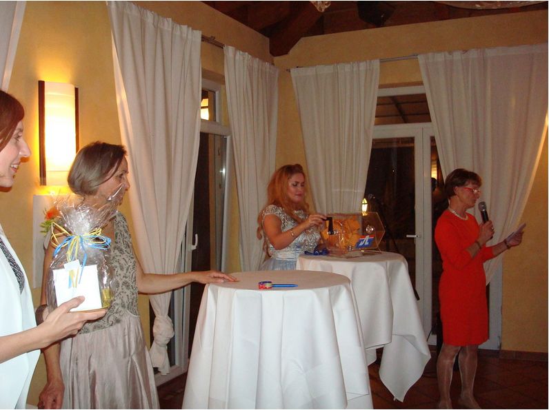 Anschließend betonte der Präsident kurz die Notwendigkeit der Spende und überreichte dann den symbolischen Scheck an Frau Müller. Die Rektorin wies noch einmal auf die Dringlichkeit des benötigten Materials für den Deutsch-Unterricht für Migrantenkinder hin.