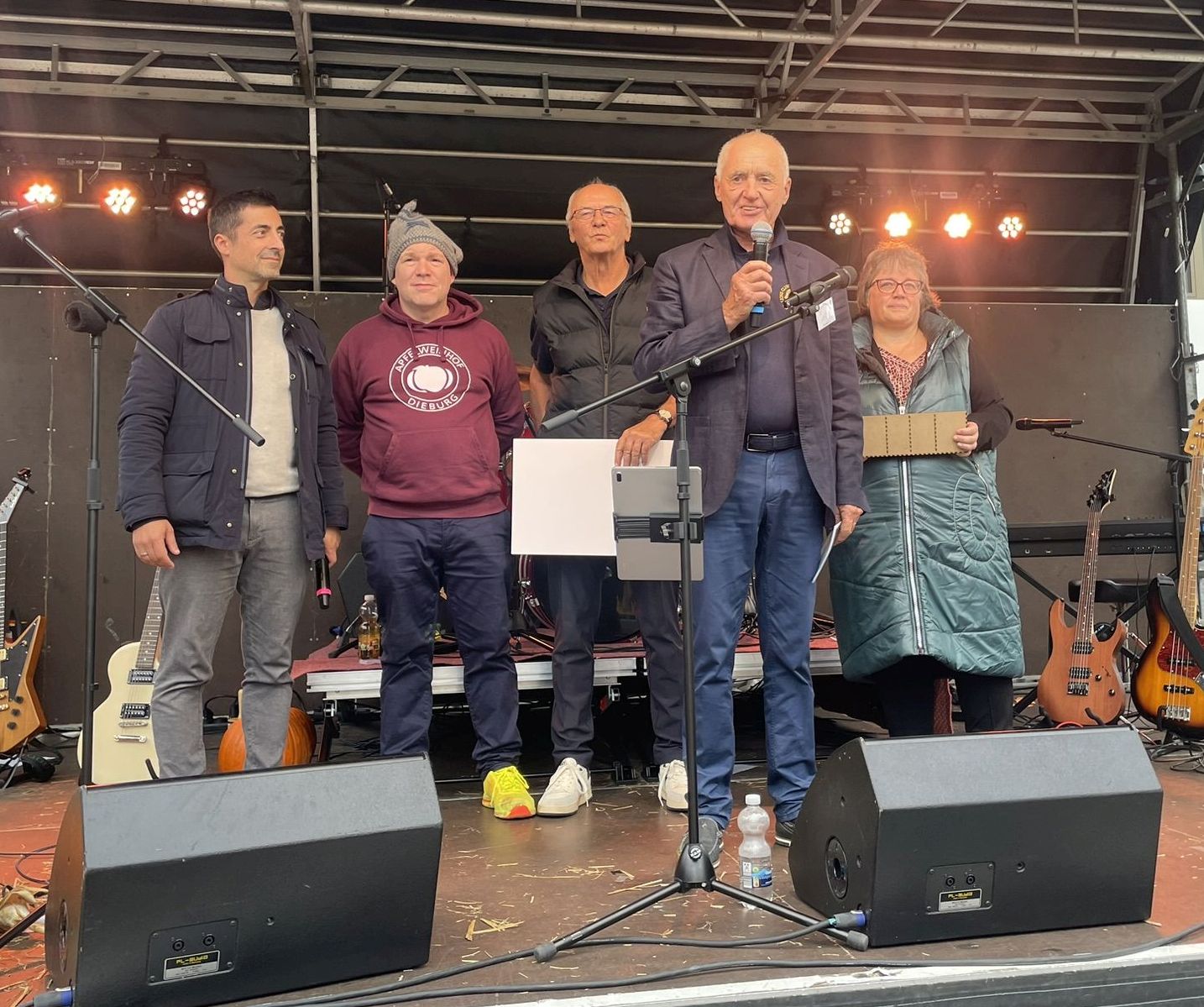 Am 12. Oktober übergab der Lionsclub Dieburger Land während des gut besuchten Kürbismarktes einen Scheck in Höhe von 2.027,65 Euro an die Friedensschule Groß-Zimmern. Mit diesem Geld will die Schule Anschaffungen für die Spracherziehung ihrer Intensivklasse tätigen.